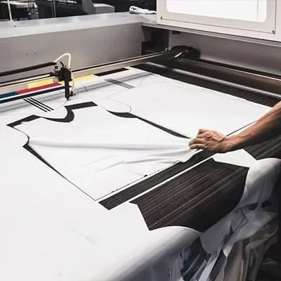 After sourcing, the fabric is cut down into pieces according to the patterns. After that, according to our client's requirements, these pieces have printing or embroidery.